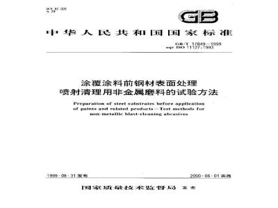 喷射清理用非金属磨料的试验方法Freparntion of steel substrates before applicatiol!of paints and related products-Test methuds fornon-metailicblast-teaning ahrasivesGB/T 17649-1999