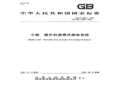 本标准规定了艇长为24m或以下小艇上安装的舷外机所使用的额定容量等于或小于27L,用于携带和贮存易燃液体的便携式燃油系统的设计、材料及试验要求。本标准不适用于压力式燃油系统。 GB/T 18571-2001 小艇 舷外机便携式燃油系统 GB/T18571-2001 标准下载解压密码:www.bzxz.net