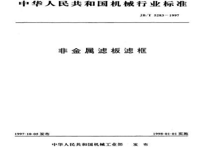 被JB/T 4333.3-2005代替 JB/T 5283-1997 非金属滤板滤框 JB/T5283-1997 标准下载解压密码:www.bzxz.net