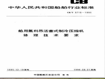 GB1184形状和位置公差未注公差的规定JB3709船用氟利昂单级制冷压缩机技术条件CB3378船舶冷藏空调制冷装置修理技术要求3勘验