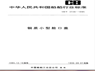 本标准规定了钢质小型舱口盖(以下简称舱口盖)的产品分类、技术要求、试验方法和检验规则。本标准适用于各类船舶用小型舱口盖。 CB/T 3728-1995 钢质小型舱口盖 CB/T3728-1995 标准下载解压密码:www.bzxz.net