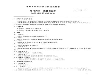 本标准规定了测定通用阀门流量系数和流阻系数的试验系统、试验程序和计算方法。本标准适用于水流通过阀门达到稳流时,测定闸阀、截止阀、节流阀、球阀、蝶阀、隔膜阀、旋塞阀、止回阀、底阀、减压阀的流阻系数和闸阀、节流阀、球阀、蝶阀的流量系数。 JB/T 5296-1991 通用阀门 流量系数和流阻系数的试验方法 JB/T5296-1991 标准下载解压密码:www.bzxz.net