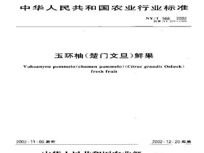 本标准规定了玉环柚(楚门文旦)鲜果的质量、抽样、检验方法、包装、运输和贮存。本标准适用于玉环柚鲜果的分等、分级。 NY/T 588-2002 玉环柚(楚门文旦)鲜果 NY/T588-2002 标准下载解压密码:www.bzxz.net