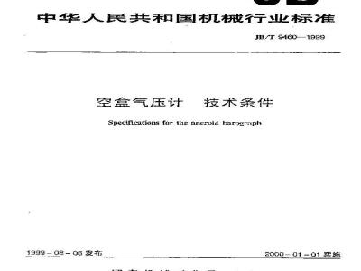 JB/T 9460-1999 空盒气压计 技术条件 JB/T9460-1999 标准下载解压密码:www.bzxz.net