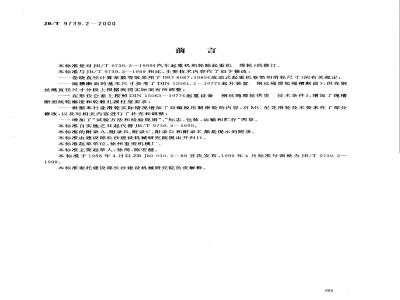 断面线轮廓度和轮毂孔圆柱度要求;-根据本行业滑轮实际情况增加了双幅板压制滑轮的内容,对MC尼龙滑轮技术要求作了部分修改,以及对相关内容进行了补充和调整;\一增加了“试验方法和检验规则”“标志、包装、运输和贮存”两章。本标准自实施之日起代替JB/T9739.2—1999。本标准的附录A、附录B、附录C、附录D和附录E都是提示的附录。本标准由建设部长沙建设机械研究院提出并归口。本标准起草单位:徐州重型机械厂。本标准主要起草人:徐周、陈宏健。本标准于1988年4月以ZBJ80010.2--88首次发布,1999年4月标准号调整为JB/T9739.2—1999。