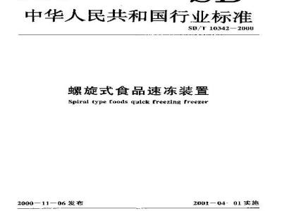 SB/T 10342-2000 螺旋式食品速冻装置 SB/T10342-2000 标准下载解压密码:www.bzxz.net