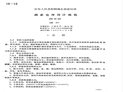 本规范适用于新建扩建的普通商业仓库。不包括粮库、冷库和危险品仓库。 SBJ 01-1988 商业仓库设计规范(不全:电气部分) SBJ01-1988 标准下载解压密码:www.bzxz.net