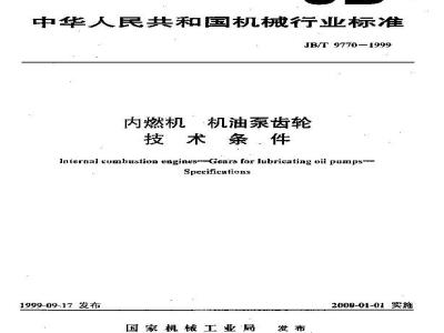 JB/T 9770-1999 本标准是对 ZB J94 004-88《内燃机机油泵齿轮 技术条件》的修订。修订时仅按有关规定作了编辑性修改,主要技术内容没有改变。 本标准规定了内燃机机油泵齿轮的技术要求,检验规则和标志、包装、运输、贮存等。 本标准适用于中小功率内燃机用的钢、球墨铸铁制造的外啮合渐开线齿轮泵的主、被动齿轮。 本标准于 1975 年首次发布,于 1988 年第一次修订。 JB/T 9770-1999 内燃机 机油泵齿轮 技术条件 JB/T9770-1999 标准下载解压密码:www.bzxz.net