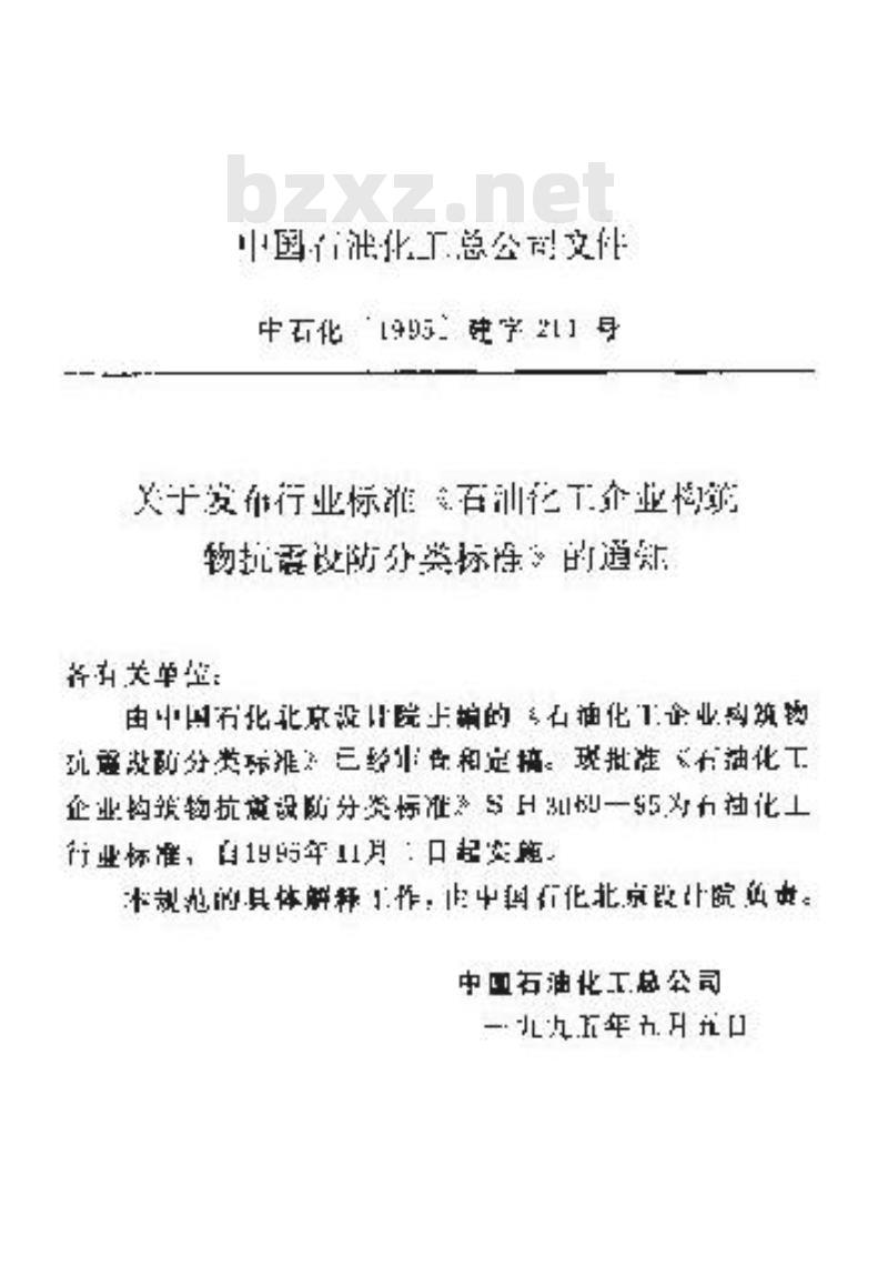 由中国石北北京设山院上编的,油化1企业筑钩抗避改配分类称准》三经律和定搞。现批准《右油化工企业构装物抗成设防分类标准SH3US5X热化工行业标准,自19年11月:口起安施本规池的具体解轩北作:止中国化北京改院鱼费。中国石油化工.总公司