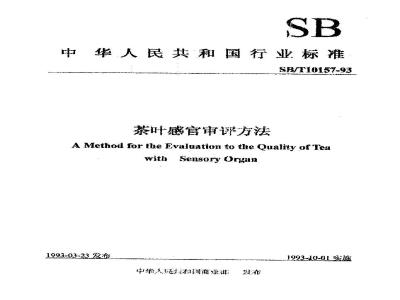 SB/T 10157-1993 茶叶感官审评方法 SB/T10157-1993 标准下载解压密码:www.bzxz.net