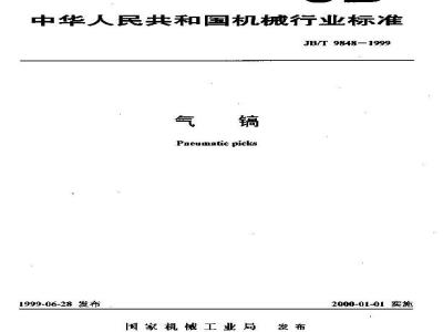 JB/T 9848-1999 本标准是对 ZB J48 006-89《气镐》的修订,主要技术内容和标准结构改变如下: ——引用了《气镐用镐钎》标准,使标准更加协调一致; ——取消了原标准“缸径”技术参数,以提高标准的适用性; ——取消了原标准产品寿命指标,以提高标准的可操作性; ——将原标准第 5 章“试验方法及检验规则”修改为两章,顷其分别进行叙述,以提高标准的实用性。 本标准规定了气镐的基本参数,技术要求,试验方法,检验规则和标志、包装、运输及贮存。 本标准适用于气镐的设计、制造、检验与使用。 本标准于 1975 年首次发布,于 1984 年第一次修订,于 1989 年第二次修订,本次是第三次修订。 JB/T 9848-1999 气镐 JB/T9848-1999 标准下载解压密码:www.bzxz.net