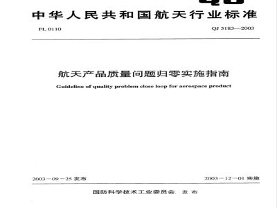 航天产品质量问题归零实施指南本标准规定了航天产品质量问题技术归零和管理归零的实施要求。QJ3183—-2003