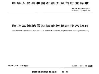 SY/T 5513-2003 陆上三维地震勘探数据处理技术规程 SY/T5513-2003 标准下载解压密码:www.bzxz.net