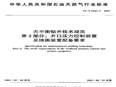 SY/T 6543.2-2003 欠平衡钻井技术规范 第2部分:井口压力控制装置及地面装置配备要求 SY/T6543.2-2003 标准下载解压密码:www.bzxz.net