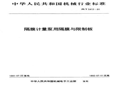 本标准适用于输送温度为一30~100℃,粘度为0.3~800mm/s、不含周体颗粒的腐蚀性或非腐蚀性液体,单联额定流量0.48~6300L/h,额定排出压力0.2~16.0MPa的往复式液力驱动隔膜计量泵用需膜与限制板(以下简称隔膜与限制板)。2术语