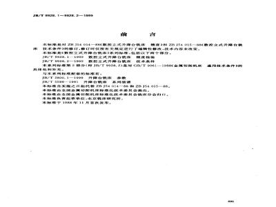 本标准是对ZBJ54014—88《数控立式升降台铣床精度》和ZBJ54015-88《数控立式升降台铣技术条件》的修订,修订时仅按有关规定进行了编辑性修改,技术内容未改变。床