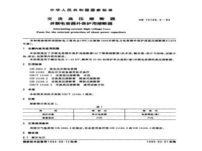Alternating-current high-voltage fusesFuses for theexternal protection of shunt power capacitorsGB15166.5—94