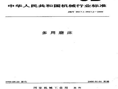 JB/T 9917.2-1999 本标准是对 ZBn J55 022-88《多用磨床 制造与验收技术要求》的修订。本标准是对 GB/T 9061-1988《金属切削机床 通用技术条件》等标准的具体化和补充。 与本标准是 JB/T 9917《多用磨床》系列标准的一部分,该系列标准包括以下两个部分: JB/T 9917.1-1999 多用磨床 精度检验 JB/T 9917.2-1999 多用磨床 技术条件 本标准规定了多用磨床的制造与验收的要求。 本标准适用于最大工件回转直径 200~250mm、工作台最大行程为 500mm 的多用磨床。 本标准于 1979 年以 JB 2613-79 首次发布,于 1988 年第一次修订为 ZB J55 022-88,本次是第二次修订。 JB/T 9917.2-1999 多用磨床 技术条件 JB/T9917.2-1999 标准下载解压密码:www.bzxz.net