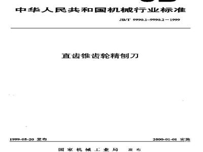 JB/T 9990.2-1999 本标准是对 ZB J41 006.2-88《直齿锥齿轮精刨刀 技术条件》的修订。修订时,删除了性能试验一章,并按有关规定进行了编辑性修改,其他技术内容未改变。 本标准是 JB/T 9990《直齿锥齿轮精刨刀》系列标准的一部分,该系列标准包括两部分: JB/T 9990.1:基本型式和尺寸 JB/T 9990.2:技术条件 本标准规定了直齿锥齿轮精刨刀(以下简称刨刀)的技术要求,标志和包装的基本要求。 本标准适用于模数从 0.3~20mm,基准 20°的刨刀。 本标准于 年 月 日首次发布。 JB/T 9990.2-1999 直齿锥齿轮精刨刀 第 2 部分:技术条件 JB/T9990.2-1999 标准下载解压密码:www.bzxz.net