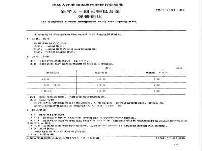 YB/T 5104-1993 油淬火-回火硅锰合金弹簧钢丝 YB/T5104-1993 标准下载解压密码:www.bzxz.net