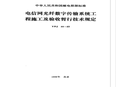 第1.0.1条本暂行规定(以下简称规定)是电信网光纤数字传输系统安装工程施工质量检验、随工检验和峻工验收的依据。适用于长途、市内通信的新建、扩建和改建的光缆线路和传输设备安装工程。本规定也可供其它光纤数字传输系统安装工程参考。第1.0.2条本规定未列入的内容应按设计文件办理。第1.0.3条各种光缆线路工程和传输设备安装工程所用器材的程式、规格、质量等均应符合本规定和设计文件的要求,工程中不准使用未经鉴定合格的器材。第1.0.4条在施工过程中,施工单位应严格执行部颁有关施工质蛋检查的规定。建设单位应通过工地代表加强工地的质量检查,做好随工检验。