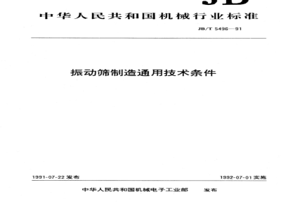 JB/T 5496-1991 振动筛 制造通用技术条件 JB/T5496-1991 标准下载解压密码:www.bzxz.net