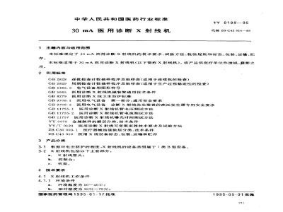 YY 0199-1995 30mA医用诊断X射线机 YY0199-1995 标准下载解压密码:www.bzxz.net