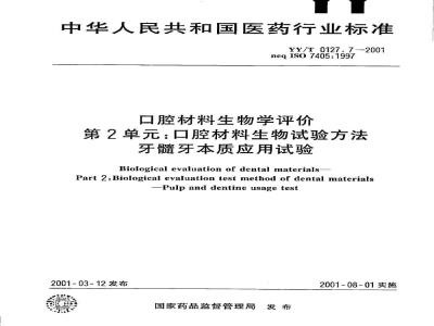 此标准在许多重要方面与ISO/TR7405不同。首先它含有一些只针对牙科材料的具体的试验方法。以前在ISO/TR7405中的许多试验方法现在已包含在ISO10993系列标准中,故在此标准中不包含这些方法的细则。其次,仅仅是委员会成员国认为已有足够发表的资料的试验方法才包含在本标准中。第三,推荐试验方法时,首先要考虑尽可能地减少使用动物的原则。中华人民共和国医药行业标准