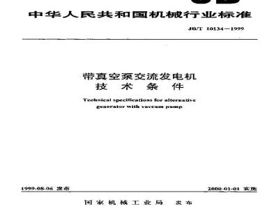 JB/T 10134-1999 本标准规定了汽车、拖拉机、农用运输车、工程车用带真空泵交流发电机的产品分类,要求,试验方法,检验规则及标志、包装、运输和贮存。 本标准适用于汽车、拖拉机、农用运输车、工程车带真空泵交流发电机。带泵发电机工作时必须与相应的真空筒、电压调节器配合使用,并与蓄电池并联工作。 本标准是首次发布。 JB/T 10134-1999 带真空泵交流发电机 技术条件 JB/T10134-1999 标准下载解压密码:www.bzxz.net