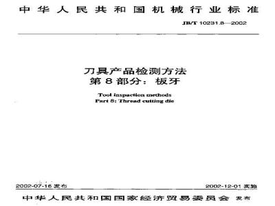 T9997-199955°两管频较圆板牙(ne4[S04231:19771504230:1977)JB/T998—199955°呵链普爆纹國板牙(ne0ISO4231:1977/1SO4230:1977)m100011999方极牙(I5226:19)贝具产品检测方法第|都分:通则JB/T 10231.J—2(KH