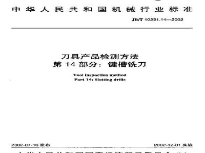 本部分规定了键槽铣刀成品检测时的检测方法和检测器具,这些方法并非唯一的。本部分适用于按GB/T 1112.1~3键槽铣刀的检测。 JB/T 10231.14-2002 刀具产品检测方法 第14部分:键槽铣刀 JB/T10231.14-2002 标准下载解压密码:www.bzxz.net