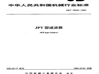 JB/T 10244—2001 本标准规定了JPT渐开线圆柱齿轮减速器的型式,外型尺寸,基本参数,技术要求,试验方法,检验规则,标志、包装、运输和贮存。 本标准适用于JPT渐开线圆柱齿轮减速器。该减速器主要用于建材行业,也可用于矿山、冶金、化工及轻工等行业机械设备的传动中。 本标准于2001年5月首次发布。 JB/T 10244-2001 JPT型减速器 JB/T10244-2001 标准下载解压密码:www.bzxz.net