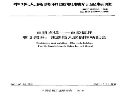 国际标准IS08430/3是生IS0/TC44\炬接及类似1.艺技未委员会”制定的.国际标准TS08430下列部分组成,总标题为电点焊一电极提托:第1部分:配合锥度1:10