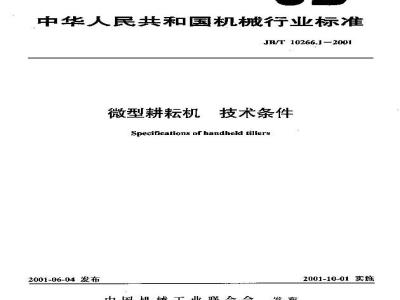 类别代孕:1或1以耕整为主时选1,以管理为主时选34.1.1微机应符个本标准的要求,并控照经规定程序批准的图样和技术义件制造,有特殊驾求时模中国机械工业联合会2001-06-04批准2001-10-01实施