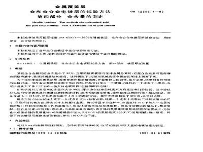 GB 12305.4-1990 金属覆盖层 金和金合金电镀层的试验方法 第四部分:金含量的试验 GB12305.4-1990 标准下载解压密码:www.bzxz.net