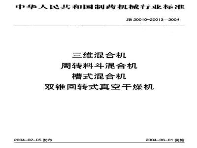 中华人民共和国制药机械行业标准JB20010~20013-2004