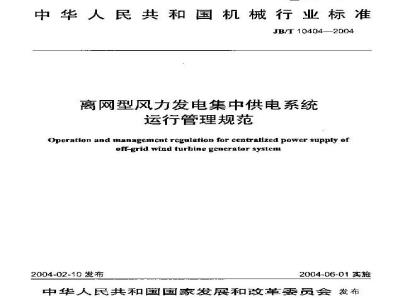 Operation and managcmcnt rcgulation for centralized power supply ofoff-grid wiad turbinegencrator system2004-02-10 发布