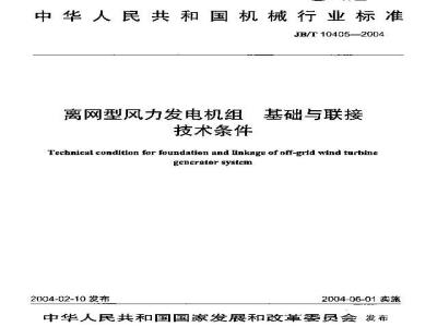 离网型风力发电机组。基础与联接技术条件本机准规了离网型风力发电机丝苯础与联接件的技本条件,坏准适肖丁风轮扫凉面积小于40m\估离网型风力发电机年。2快代要求