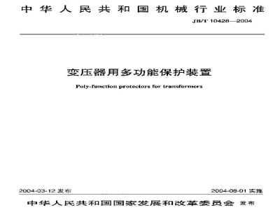 本标准规定了变压器用多功能保护装置的术语和定义、产品型号、技术要求、检验规则、试验方法、标志、包装、运输和贮存。 JB/T 10428-2004 变压器用多功能保护装置 JB/T10428-2004 标准下载解压密码:www.bzxz.net