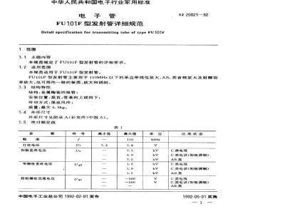 本规范规定了FU101F型发射管的详细要求。1.2适用范围