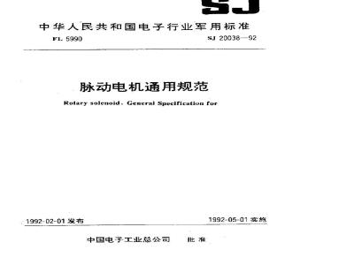 本规范规定了脉动电机及脉动电机开关组件的一般技木要求、质量保证规定以及包装、标志、运输和储存的要求。本规范适用于军用通信、雷达及其它电子设备中用于驱动旋转开关以及在系统线路自动换接装置中作为执行件的旋转行程型脉动电机。 SJ 20038-1992 脉动电机通用规范 SJ20038-1992 标准下载解压密码:www.bzxz.net