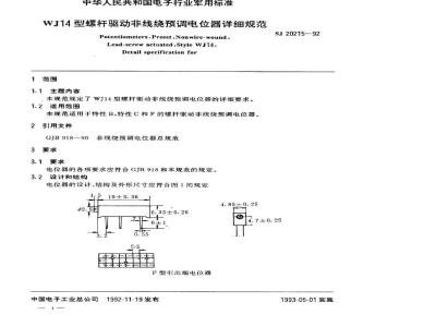 中华人民共和国电子行业军用标准WJ14型螺杆驱动非线绕预调电位器详细规范Potentiometers,Preset,Nonwire-wound,Lead-screwactuated,Style wJ14,Detail specification for