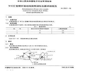 本规范规定了WT22型螺杆驱动线绕预调电位器的详细要求1.2适用范围