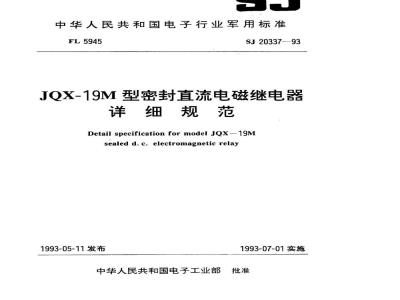 SJ 20337-1993 JQX-19M型密封直流电磁继电器详细规范 SJ20337-1993 标准下载解压密码:www.bzxz.net