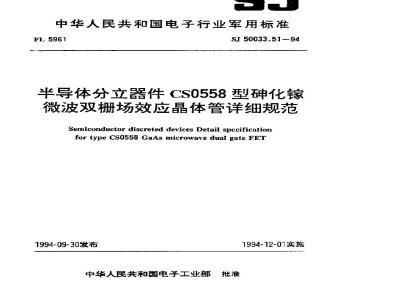 中文名称:半导体分立器件 CS0558型砷化镓微波双栅场效应晶体管详细规范