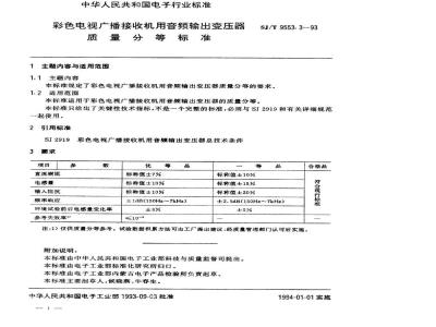本标准适用于彩色电视广播接收机用音频输出变压器的质量分等本标准只给出了关键性技术指标,不是一个完整的标准,必须与SJ2919和有关详细规范一起使用。