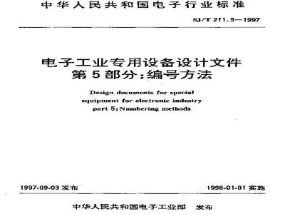 SJ/T 211.5-1997 电子工业专用设备设计文件 第5部分:编号方法 SJ/T211.5-1997 标准下载解压密码:www.bzxz.net