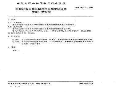SJ2957电子设备用压电陶瓷德波器分规范电视伴音中频电路用压电瀚您滤波器SJ2958电子设备用压电陶瓷滤波器空自详细视范电视伴音中频电路用压电陶瓷滤波器评定水平E