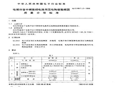 本标准适用于电视半音中频鉴频电路用压电陶瓷鉴题器的质分等。本标只给出了关键性技术指标,不是~个完整的标准,必须与 SJ296588,SI2966-88和有关详细规范一起使用。