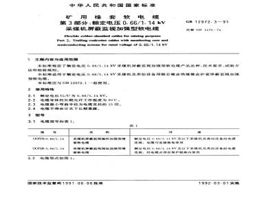 Flexible rubber-sheathed cables for mining purposesPart3:Trailing coalcuttercableswith monitoring coreandsemiconductingscreensforratedvoltageof0.66/1.14kv主题内容与适用范围